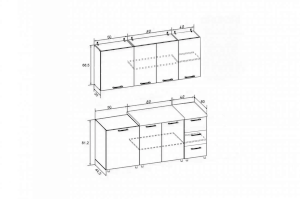Высота верхних шкафов (мм) | 685 |