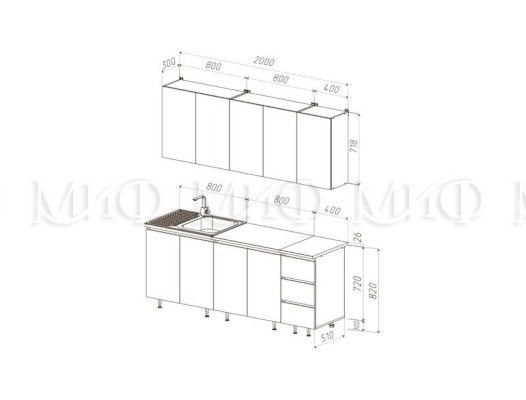 Кухонный гарнитур Челси 2,0 м (Миф)